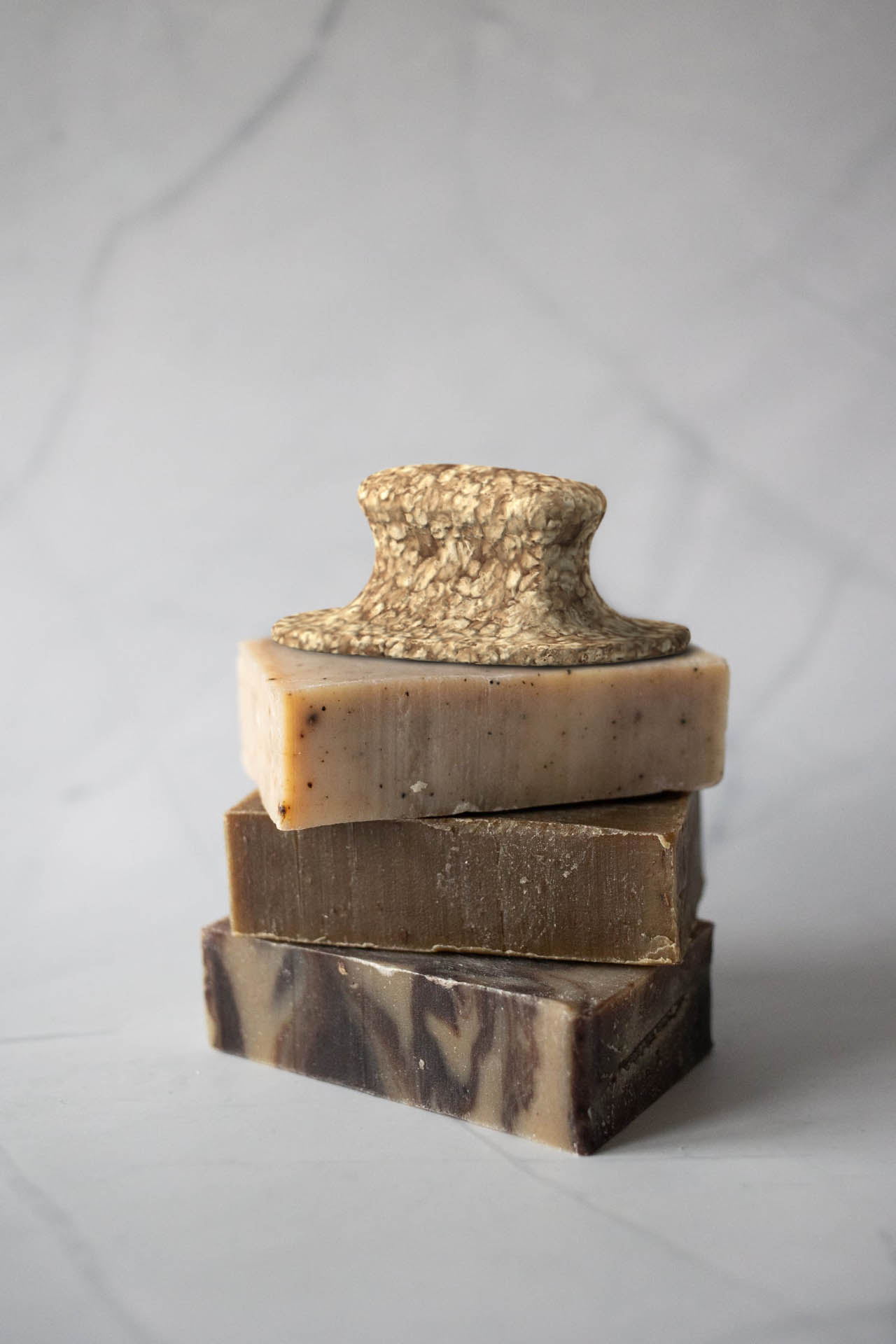 The set is composed by a product for the face, one for the body and one for the feet or, in general, where there is the need for a stronger action. The the face Brushcob and the one for the feet share the same shape: they differ in the granulometry type of the corn cob, which is finer in the one for the face and rougher in the one for the feet. The Brushcob for the body is made with a fine granulometry and a bigger shape, that helps covering bigger areas. After each use, the products can be left to dry in the air, like soap bars, remaining effective for many usages. When they lose their efficiency, the brushes can be safely disposed in the organic waste.