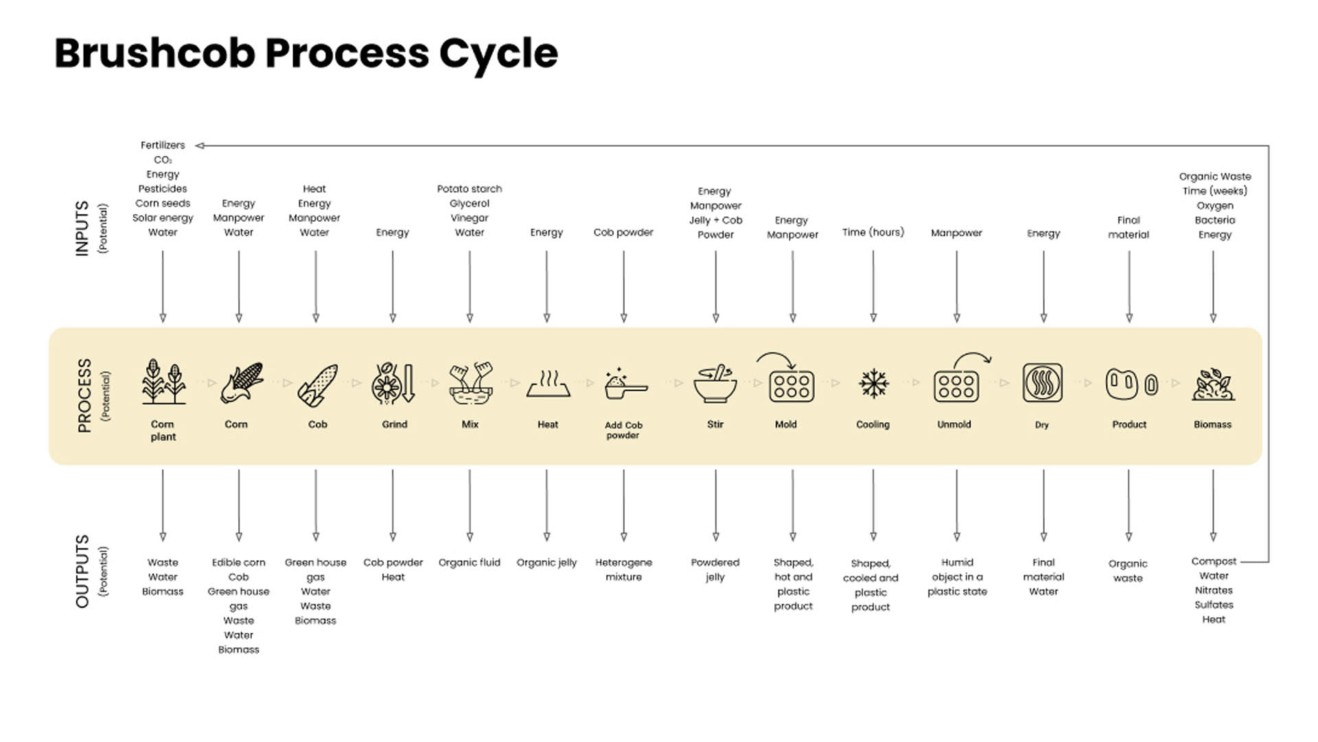 Brushcob is a set of three scrub brushes for the skincare made with a biomaterial of our ideation based on corn cob, a massively produced industrial waste. This exact waste was chosen because of its properties, which guarantee the performances of the product.