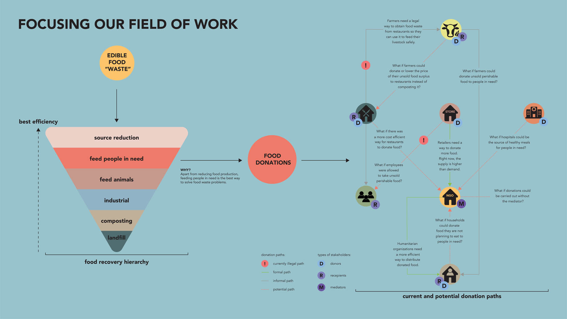 Throughout our research, one finding stood out: The amount of food waste could be reduced by optimising food donation practices, as large amounts of edible food are discarded due to the lack of available options for organised food donation. Some donors actually wish to donate greater amounts of food but are limited with the capabilities of the humanitarian organizations.