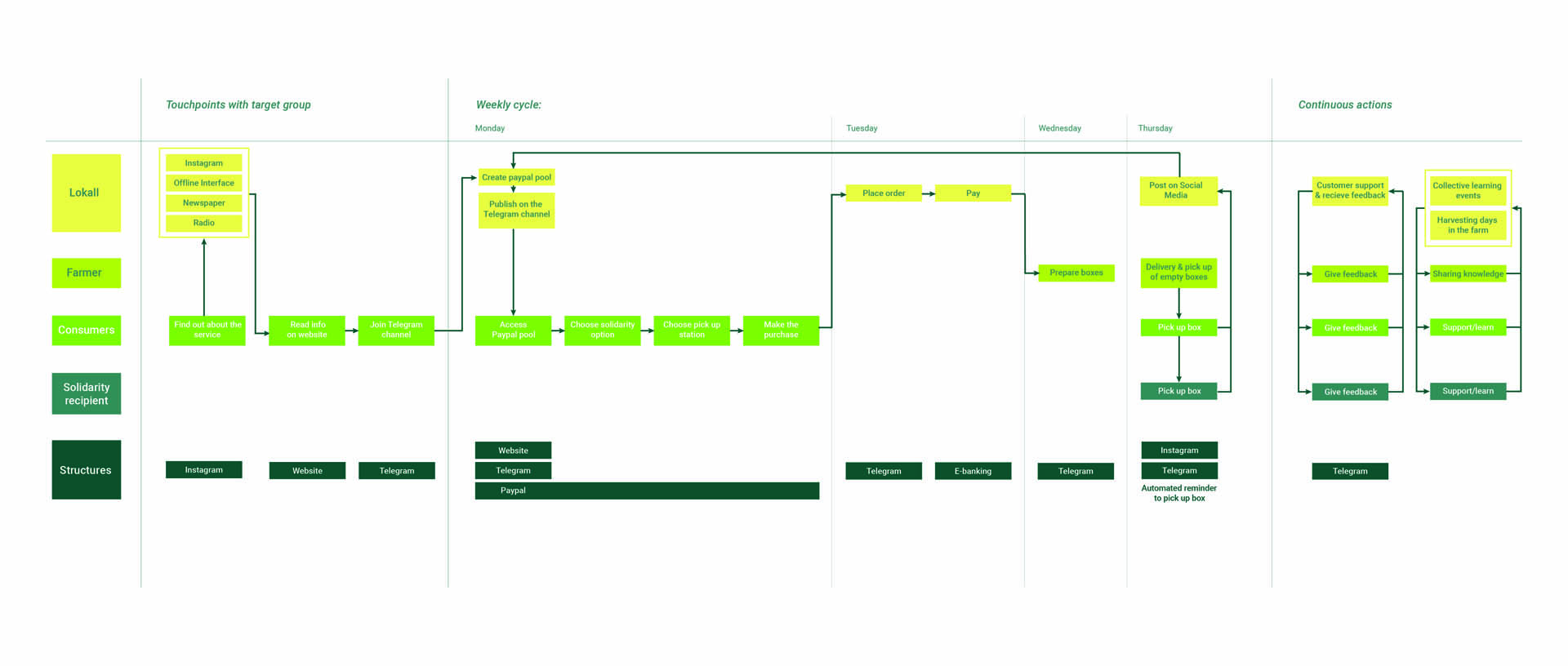 Through Lokall, a new infrastructure was quickly built where consumers take responsibility for reducing the work and precarity of farmers by organising marketing, sales and urban distribution voluntarily as well as by helping on the fields when needed.