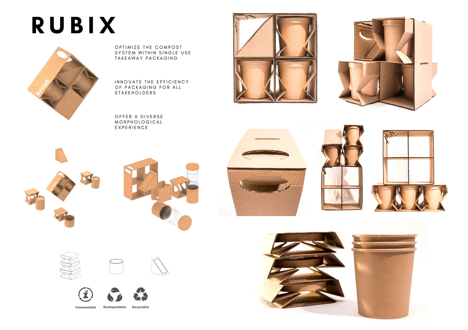 Since RUBIX offers a divers morphological experience, the intended impact of RUBIX is to encourage users in a playful way to FINISH their food, to COMPOST the used packaging and to RE-USE the cell carrier, giving it a second life for the future.
